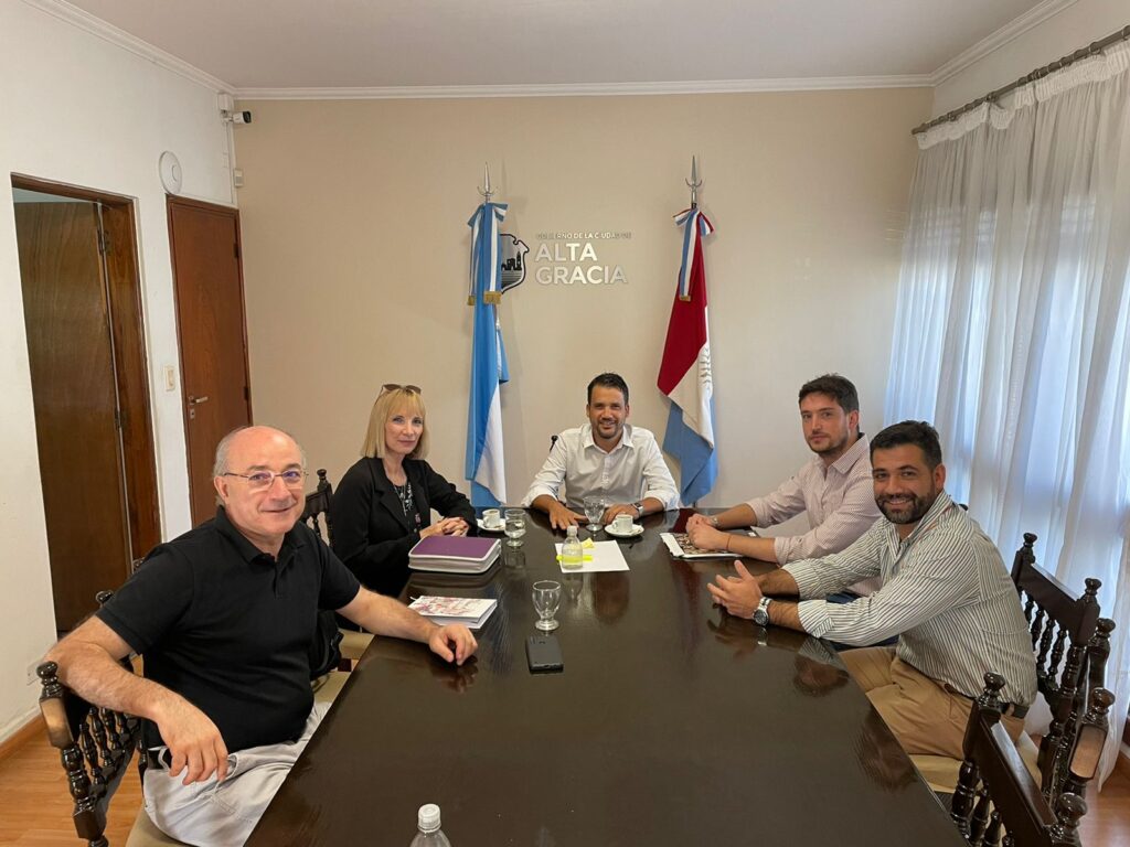 En esta oportunidad el presidente de la mutual Carlos Mugica, Marco Galán, responsable de la producción del proyecto de hábitat social se reunió con el intendente de Alta Gracia, Marcos Torres Lima.