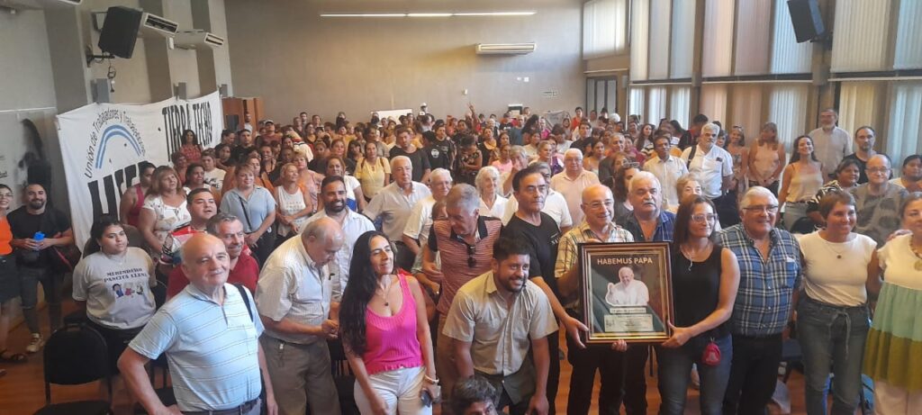 En el Salón de la Unión de Educadores de la Provincia de Córdoba, se llevó a cabo un homenaje al Papa Francisco en conmemoración a los 10 años de su elección como Sumo Pontífice.